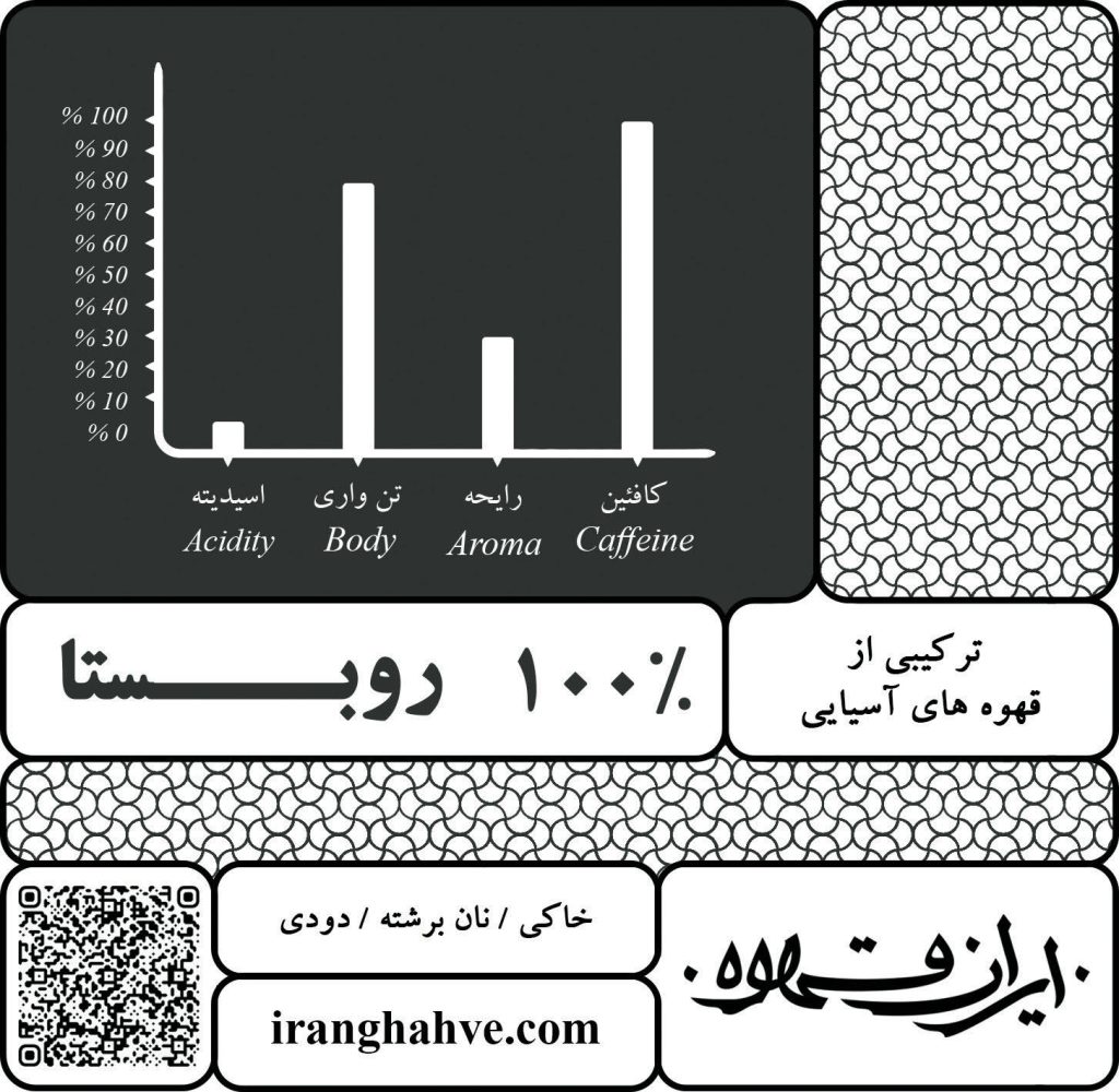 ترکیبی قدرتمند با ۷۰٪ روبوستا و ۳۰٪ عربیکا؛ بادی بالا، کرمای غلیظ و کافئین قابلتوجه با تعادل بهتر نسبت به روبوستای خالص.